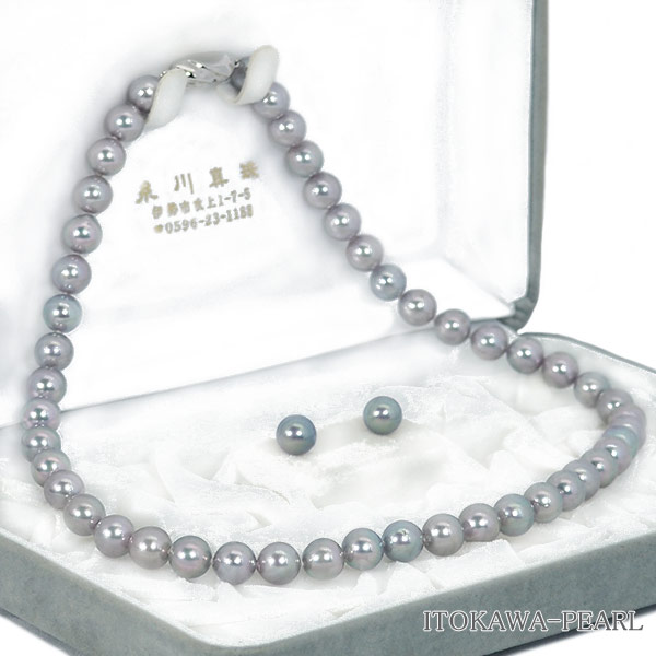 ようやくグレーパールをキーワードに定め、9月下旬頃にお店に伺ったのですが、突然の訪問にも関わらず、とても丁寧に対応して頂きました。このグレーパールのネックレスを試着させてもらい、鏡に写った自身の姿を見たときに、とても強く感動してしまいました。